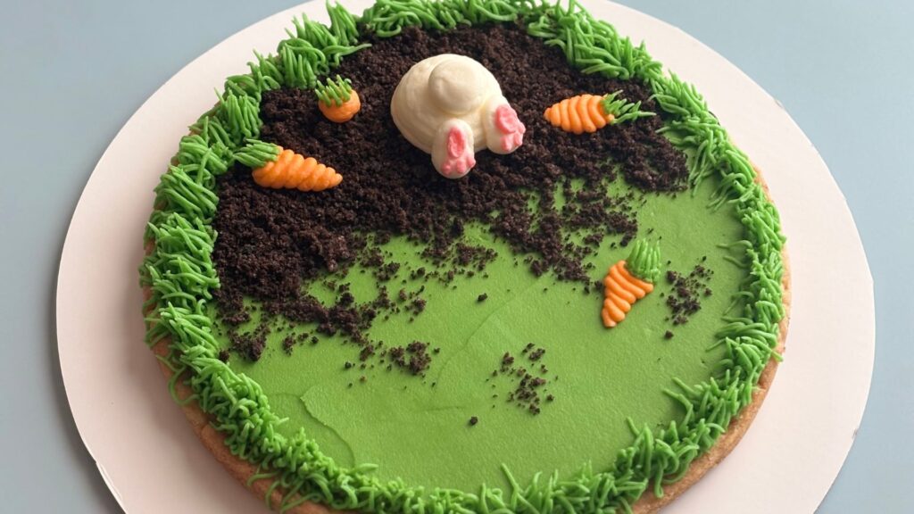 🐰🥕 Cookie Cake Decorating Class! 🍪🍷Join us for a sweet and creative night decorating your very own adorable Bunny Cookie Cake!In this hands-on class, each participant will decorate:✨ An 8” chocolate chip cookie cake✨ Frosted with vanilla buttercream✨ Packaged in a sturdy bakery box to take homeYou’ll learn step-by-step how to:• Fill piping bags• Frost and smooth the top layer• Pipe a grass border• Add crushed Oreo “dirt”• Create a buttercream bunny and carrots (just like the sample shown!)Age Guidelines:Must be 12+ to attend.Spots are limited, so grab your seat and come sip, swirl, and decorate with us! 🍷✨Registration closes April 7th—don’t miss out!